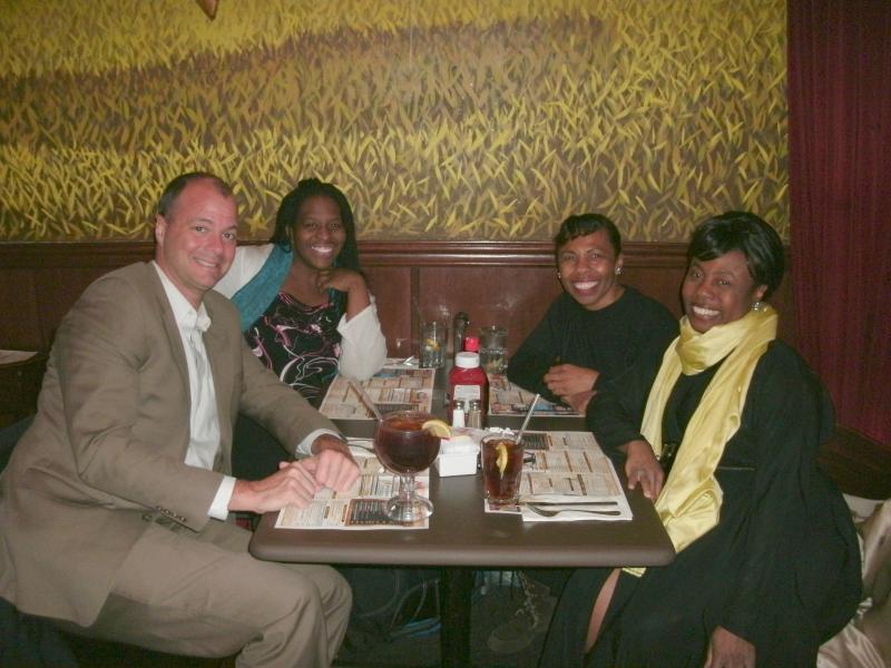 team members from our Fannie Lou musical visited the school in honor of King Day on Friday, Jan. 18, 2013. Their presentation consisted of a few brief scene excerpts and songs from Fannie Lou, performed in a staged reading format. Students also learned a little background about the production and actors. Participants Ron, Yewande, Felicia and Cheri (clockwise, from left) are pictured above at a Times Square eatery, where they stopped to grab a bite after the performance.