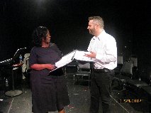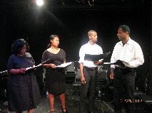 The above photos are from the March 24, 2012, New York City staged reading of “Scenes and Songs from Fannie Lou.” The performance featured several songs and dialogue excerpts from the full-length musical Fannie Lou. Participants included more than a dozen actors and singers. Several parts were double cast and some actors played more than one role. Pictured, starting with the upper left photo and going from left to right in each row, are: (Photo 1) the full cast and crew; (Photo 2) Diane Parker as Fannie Lou Hamer; (Photo 3) Paul Fraccalvieri as The Narrator; (Photo 4) local civil rights leaders were portrayed by, from left: Lucinda Carr, Tiffani Coleman, Chris Gwynn, Cheri Hunter, Vincent Filliatre, Brittane Rowe and Victor Arnez; (Photo 5) Local Voting-Rights Resistance Leaders are played by Robert Rice, Josh Rothberg and Paul Fraccalvieri; (Photo 6) Tiffani Coleman as Fannie Lou and Brittane Rowe as Laura share a light moment; (Photo 7) Maria Sbrocchi portrays Pamela and Jonathan Rodriguez plays Junior in this scene; (Photo 8) here, Chris Gwynn (second from right) plays Junior opposite Diane Parker’s Fannie Lou, Brittane Rowe’s Laura and Vincent Arnez’s Rev. Hill; (Photo 9) Hillary Ekwall played Pamela in two of the performances; (Photo 10) Maria Sbrocchi played the role of Pamela, which was double cast, during two performances; (Photo 11) Diane Parker as Fannie Lou and Paul Fraccalvieri as The Reporter debate the merits of fighting for the vote; (Photo 12) Brittane Rowe as Laura and Chris Gwynn as Junior share a poignant moment.